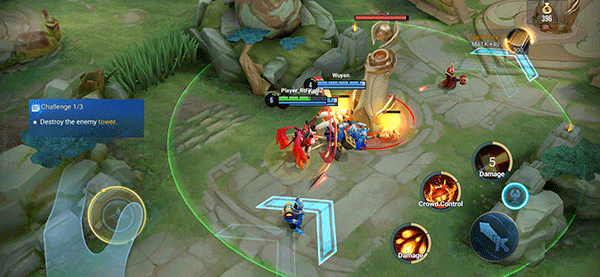 在游戲中,玩家可以和全世界不同地區(qū)的玩家進(jìn)行對(duì)戰(zhàn),與他們組合成一個(gè)小隊(duì),然后各自選擇自己在隊(duì)伍中的角色英雄,每隊(duì)共有5個(gè)角色位置,每個(gè)位置需要選擇合適的職業(yè)英雄,如打野、法師、射手、輔助、戰(zhàn)士,不同的職業(yè)將在游戲內(nèi)擁有不同的玩法配合和道路。最后根據(jù)團(tuán)隊(duì)的完美配合將敵方高低防御塔摧毀后即可獲得游戲的勝利。