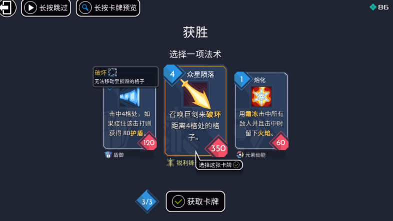 3、游戲獲勝之后選擇一項法術【眾星隕落】