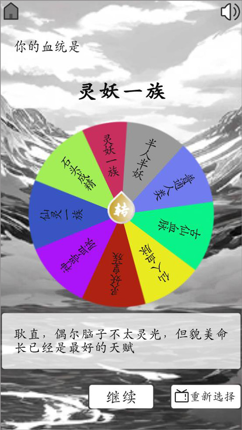 我靠轉盤修煉成仙這款游戲,是文字修仙類的手游。它通過模擬隨機文本,讓玩家體驗修仙界的種種經歷,書寫獨屬于自己的修仙故事。當時我正躺在床上玩手機,冷不丁瞧見屏幕上跳出“是否穿越”的選項。出于好奇,我點了“是”,就此獲得穿越到修仙大陸的契機。我帶著上輩子的魂力成功降生,先天靈魂強度比旁人高出許多。穿越到修真界后,我隱藏了自己的血脈,表面上就是個普通人類。而在這片修仙大陸,人類依舊占據著主要勢力。