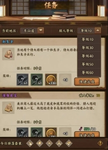 游戲中還有特殊的奇遇任務(wù),玩家通過完成奇遇獲得道具與特殊貨幣,貨幣可在下方“兌換獎勵”處兌換自己需要的道具(招募武將的菊酒、強化裝備的符文等)與金幣。