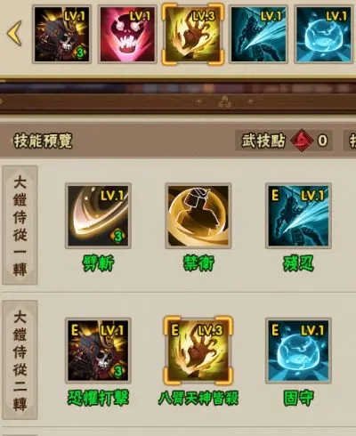 武將三十級四階裝備后便可以去挑戰(zhàn)道館試煉了,通過試煉可讓武將進行二轉(zhuǎn)和三轉(zhuǎn),二轉(zhuǎn)與三轉(zhuǎn)分別能解鎖新一批技能,武將全部二轉(zhuǎn)解鎖至四階后,讓武將學習二轉(zhuǎn)技能來搭配使用。