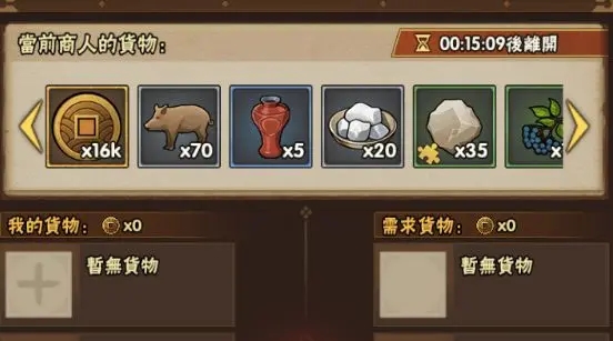 商隊玩法中的遠方商人來臨時,可以以便宜的價格交換需要的材料。