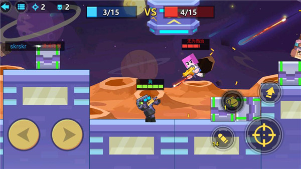 游戲中擁有海量武器可以選擇,包括:AK、轉管機槍、狙擊槍、像素槍、沖鋒槍、手槍等等,可以讓玩家盡情的體驗到射擊游戲的快樂。同時該游戲還提供了了不同的模式玩法可以游玩,有競技模式和娛樂模式,前者更加側重獵殺,挑戰性更大;后者則更多的是娛樂,比較休閑和輕松,這兩者可以很好的滿足玩家們的不同玩法需求。