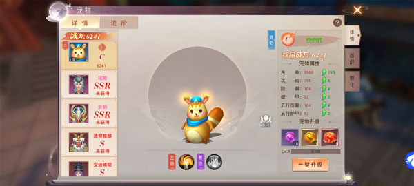 3、寵物資質(zhì)越高,升級后獲得的屬性越多(相同的寵物,推薦培養(yǎng)初始資質(zhì)最高的)。