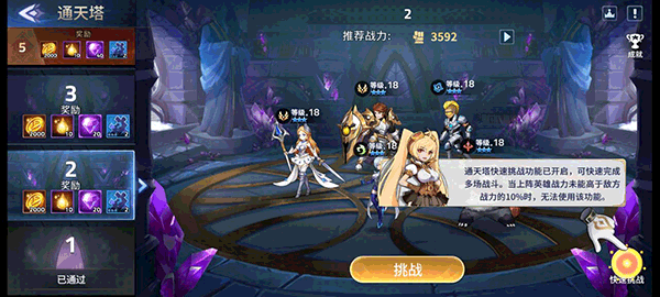 當我們實力遠高于當前層數的實力,我們就可以使用快速挑戰來跳過戰力差距過大的關卡,但如果我們上陣的陣容戰力不能高于敵方戰力百分之10,將無法使用快速挑戰功能。