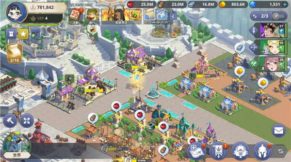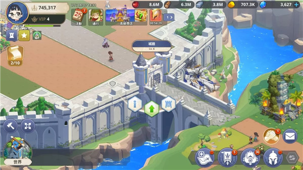 從游戲中最基礎的起始位置出發,所有游戲內容大多圍繞在資源的爭奪及運用,取得資源的管道非常多,在目前的游戲進度,還沒有遇過資源短缺的問題,大多出現的狀況是加速道具不夠,導致必須等待科技研發或建筑升級完成,不過在等待科技的途中,能透過大世界狩獵提升戰力,在前期完全沒有需要等待的空窗期,也沒有太多逼課要素出現,完全可以透過各種操作提升戰力而不會遇到過度難纏的對手。