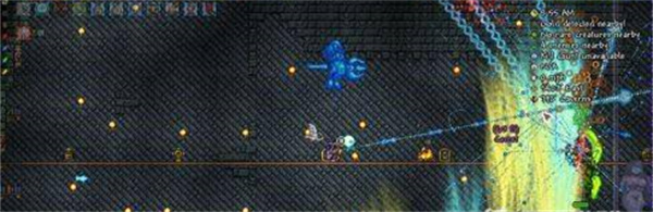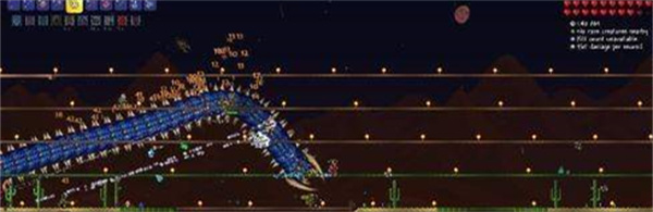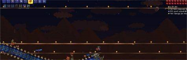 4、在地獄場景中,我們需要召喚肉山進行戰(zhàn)斗,肉山的整體難度很大,我們一定要提前建立好戰(zhàn)斗平臺,并且可以利用愛心雕像提前放置一些回血道具。
