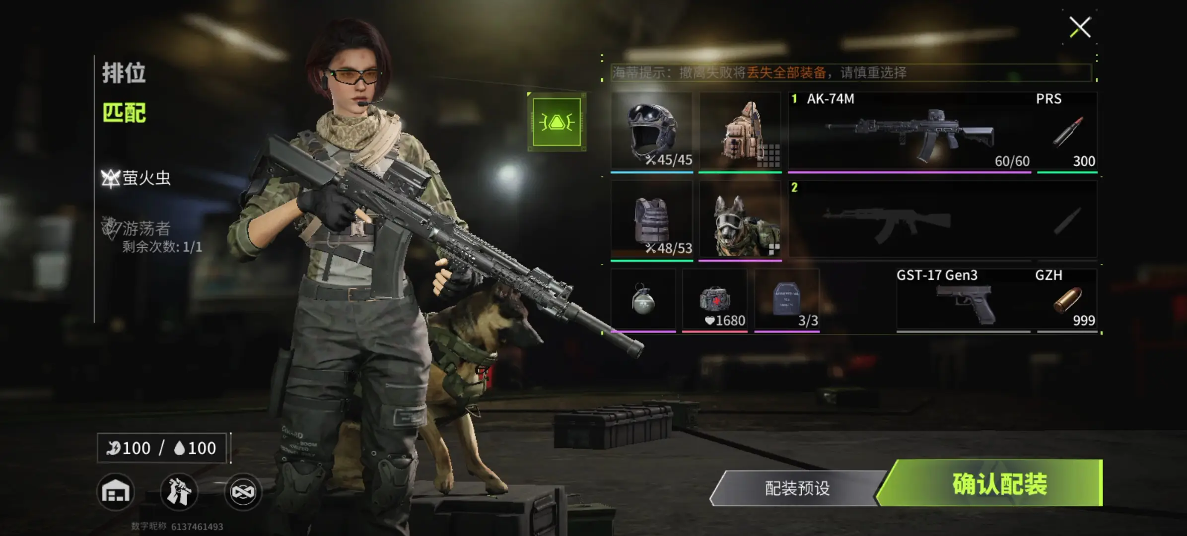 此外AK系列的AKM,AK-74M都是便宜而且好用的槍,與AK-74N不遑多讓。子彈的話螢火突擊沒有概率穿甲的設定,因此從性價比考量建議購買藍色的5.45*39mmBTgs,其對防具耐久破壞很高,破甲非常快。這里有一個小技巧,我們初始有兩個槍格但只帶一把就夠了,另外一個格子放局內獲得的槍,這樣才能收益最大化。