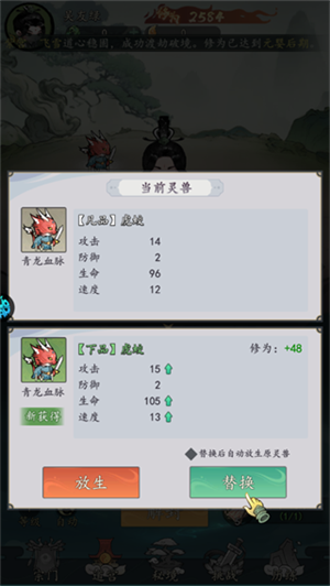 3、當獲得品質更好的靈獸可以選擇直接替換,被替換下來的靈獸會直接放生化為靈石和修為