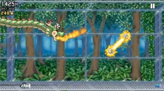 瘋狂噴氣機(jī)游戲中人物一直處于向前飛行的狀態(tài),我們不能控制人物的進(jìn)退,只能夠控制上下方向。人物在不斷的奔跑中,還需要躲避導(dǎo)彈、激光器以及電激光鏈(后期小編會(huì)對(duì)這些道具一一介紹)如果,被上面三個(gè)武器碰到,那么游戲也就結(jié)束。而游戲中還會(huì)出現(xiàn)很多有益的道具,比如飛鳥、噴火龍、機(jī)甲等。