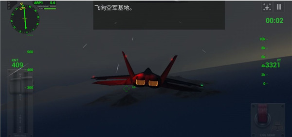 航母起飛,順著地圖指引,高度不要超過1000ft都沒事,你看到那個高度和雷達圖標變成紅色那就馬上降低高度,否則任務失敗,這關可能是收集情報的那種,飛到第一個任務地點了,不要降落,速度在230km左右,低空盤旋,等到屏幕上的圖標進度條滿了,新任務出來了,在加速離開,不過也不要開太快。之后跟著指引飛一段就是降落的機場了。怎么降落就不多說了,和第二關一樣,停在機庫前的空地上。