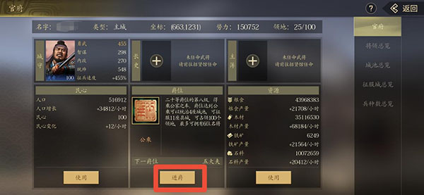 1、檢查官府的爵位有沒有升級,爵位到達“不更”才可以征服一座縣城。