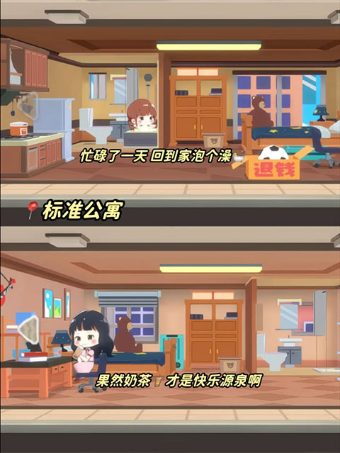 2、經(jīng)營公寓,你不僅要建造單人公寓、男生公寓、女生公寓、標(biāo)準(zhǔn)公寓甚至復(fù)式公寓等不同類型的房間,還要建造餐廳、快遞驛站、早餐鋪、面包店等商鋪,更好的服務(wù)于租客們。