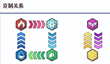 陣營克制關系可以總計造成125%傷害,例如火元素可以對冰元素造成125%的傷害,冰元素又可以對草元素造成125%傷害。此外光元素可以對暗元素造成125%傷害,暗元素同樣可以對光元素造成125%傷害。所以選擇正確的屬性克制可以令整支遠征隊達成事半功倍的效果。
