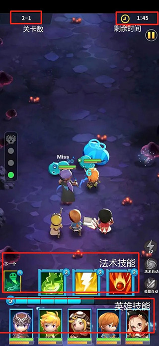 對局中除了英雄技能外,還擁有一套由團長大人自行決定釋放時機的法術系統。法術的碎片會在團長大人通過關鍵關卡后隨機獲取,收集足夠的法術卡牌碎片后即可解鎖或升級法術等級。