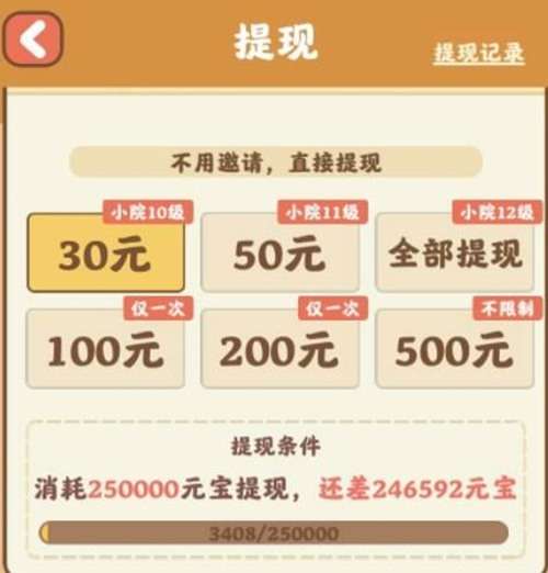 3、前期可以優(yōu)先來選擇0.3元現(xiàn)行提現(xiàn),后期開始,玩家們收益越高,那么獎勵領(lǐng)取的也會更多,福利資源獲取到也會會更多。