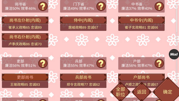 1、任命:你可以通過所有職位檢查每個人的忠誠度和支持者。在消滅這個家庭之前,確保你有足夠的人才來取代這些權力官員的職位,所以你需要科舉考試,建立國家子女監督管理局,參觀更多的燈會來吸引平民。