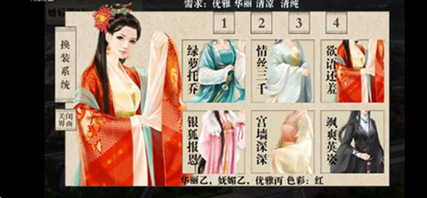 -第三步,按觸發條件來攻略各個人物,剩余時間每天巧手坊繡嫁衣,敷衍就可以(省回合,也就是時間,活動次數),送人加好感(家人+30,閨蜜及好友+10)。目的第三年獲得衣服。