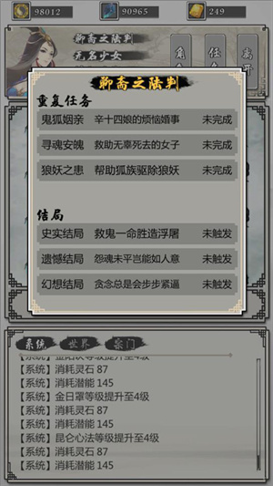 去廣平府交談辛十四娘得家書(shū),去山谷交談辛老翁,然后回廣平府交談馮生,去墓地調(diào)查,切磋鬼卒,得薛郡君在廣平郊外,然后交談薛郡君,最后找辛老翁!