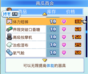 3、道具:商店會出現加屬性的道具,后期一到貨就買,這樣出的比較多,你買的次數少,他進貨就少。需要注意的是每種物品上限99個,滿了別忘了用。屬性道具加的的不會影響到轉職的天花板。