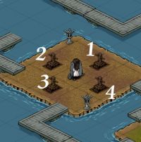 按照圖中木人標(biāo)識數(shù)字,333222操作木人即可前往左方小島