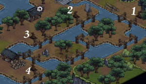 在龍泉鎮(zhèn)(9.17)進(jìn)入暗河,在暗河水車處搜索觸發(fā)劇情,到暗河第一個火堆(3,19)多次搜索找到衡木修復(fù)水車進(jìn)入山間河谷。