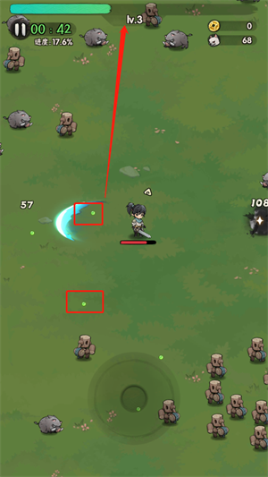 1、游戲中的玩法與傳統肉鴿游戲類似,我們需要擊敗敵人獲得經驗,拾取經驗滿后可升級一次