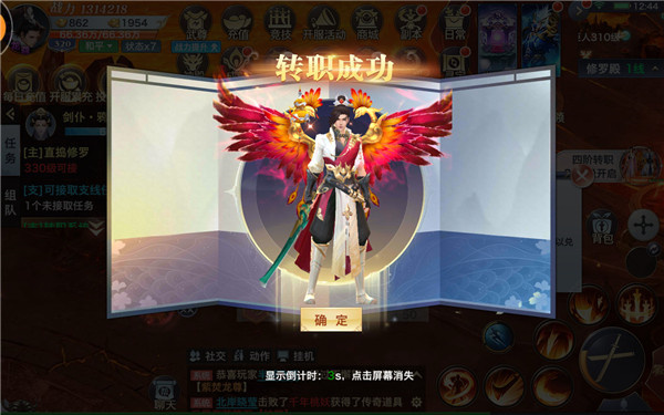 功能的開啟:羽翼、法器、武侍等多項圍繞角色成長的系統玩法將會經過轉職之后逐一開啟。