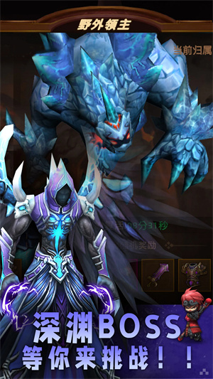 說明:等級達到40級以上即可挑戰,每20級設置一檔領主。野外領主被擊敗后,隔段時間會刷新(等級越高刷新等待時間越長),挑戰任何野外領主均消耗玩家每日總挑戰次數。擊敗野外領主可以獲得裝備、神裝碎片等珍稀道具獎勵。
