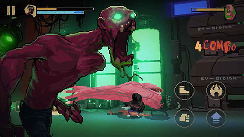 游戲整體的打擊感十分優秀,將戰斗的自由度與創造性盡可能展現的極致而真實。并且對于角色打擊的“夸張感”拿捏得十分到位,中距攻擊上的“肢體撕裂”讓整個攻擊動作充滿力量感,盡管游戲以像素風來描繪主角與敵人,但攻擊動作中細節并不少。