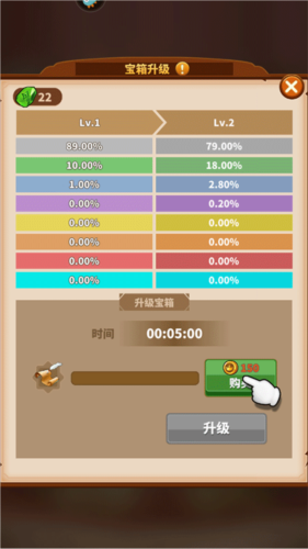 5、獲得的獎(jiǎng)勵(lì)可以用來提升寶箱等級,寶箱等級越高開出珍稀裝備的概率也會(huì)越高