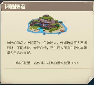 神秘醫者:前往含有神秘醫者的海島可以隨機治愈一個陣亡的伙伴并恢復全部生命值,如無陣亡伙伴則隨機恢復一個伙伴的全部血量。