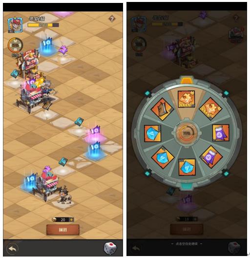 廢土尋寶的主要玩法是通過投隨機骰子和遙控骰子來前進相對應的格子完成格子隨機的趣味事件以及豐富的獎勵。