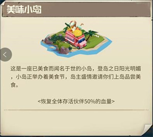 美食海島:前往該海島,品嘗美食可以為受傷的伙伴回復(fù)生命值。