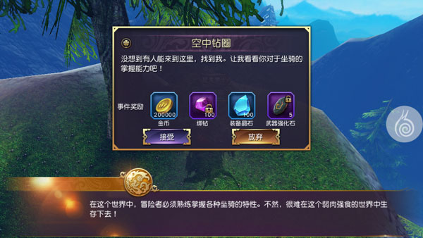 任務(wù)要求:騎上飛行坐騎,于規(guī)定時(shí)間內(nèi)穿過空中的光圈。