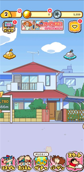 最后一個(gè)出現(xiàn)在庭院里的飛碟,點(diǎn)擊某些飛碟能夠獲取可觀的金幣,部分則需觀看廣告。