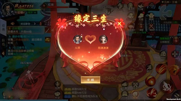 在求婚成功之后,我們還需要完成一個(gè)喜結(jié)良緣的婚姻任務(wù),任務(wù)比較簡(jiǎn)單,去找月老選擇喜結(jié)良緣就可以完成任務(wù)了。之后選擇登記結(jié)婚,會(huì)彈出一個(gè)緣定三生的界面,選擇舉行婚禮,就可以拜堂成親,這樣結(jié)婚就完成了。