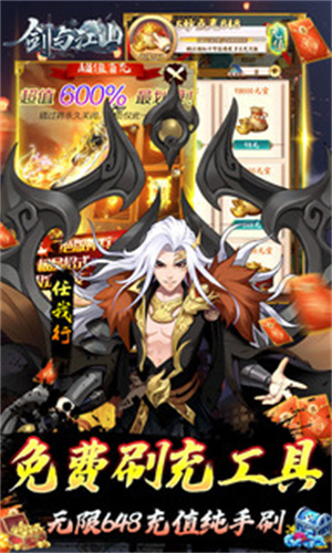 劍與江山內購作為一款卡牌游戲,游戲的福利不可謂不豐厚,新手開局即可獲得648直充,玩家登錄即可領取十萬真充,充值活動直接檔位拉滿,所有獎勵全部拿下,還有許多神級武學以及神兵、陣法可以領取。感興趣的小伙伴們,趕緊下載體驗吧。