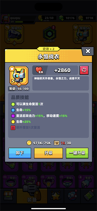理由:復(fù)活必備,并且發(fā)貨后還能獲得攻擊力加成,升級(jí)為紅色之后還能再復(fù)活一次,再也不用害怕暴斃了。