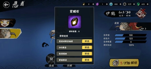 忍者必須死3手游中有6個忍者角色,觸發(fā)覺醒任務(wù)需要在忍者角色達到70級時。