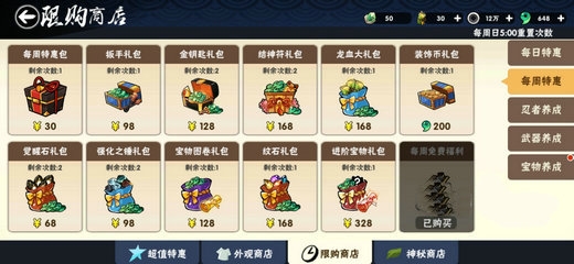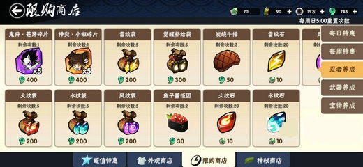 在商店里有覺醒石禮包,打開后會獲得5個覺醒石和400勾玉,每周可購買兩次,一個禮包的價格為68,非常適合有錢又急需給武器升級的玩家。