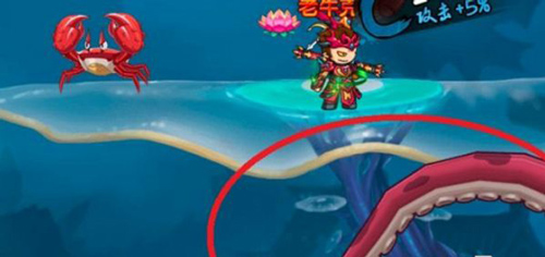 4、進入方法:玩家在挑戰關卡的過程中,打到第二波小兵的位置,在右下角有個大章魚觸須。只要打一下章魚觸須且位于觸須的范圍內,就會被強制拉進隱藏副本深海當中,也可以選擇自行走進去。此外這個章魚觸須是可以打掉的(雖然好像沒什么用)。