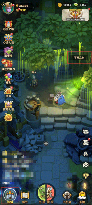 游戲前期時,大家參與冒險模式玩法使用的職業固定為創建角色時選擇的職業,過完新手引導后如果覺得使用的職業不順手,可以在【城鎮】盡頭的【不朽之樹】處使用鉆石解鎖其他的職業(解鎖第二個職業需100鉆石,解鎖第三個職業需500鉆石,全部職業解鎖共計需600鉆石),后續想要切換職業可以直接在【不朽之樹】處切換,無需再次付費。