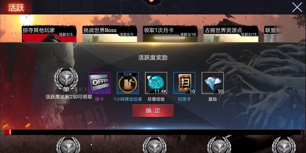 接著便是活躍獎勵和普通任務了,活躍點每滿一定數值,都可以領取一個活躍寶箱,里面的經驗也非常多,可以說是最主要的經驗來源之一了~然后普通任務也不錯,達到一些目標之后,就可以直接領取,但與前兩者相比,就少了很多了,并且到了后期,真的是可有可無大了,另外推圖也有經驗,就是比較少而已……