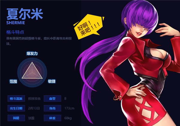 特點:近戰(zhàn)角色,八神流古武術(shù),連擊狂野殘暴、爆發(fā)力強(qiáng)。