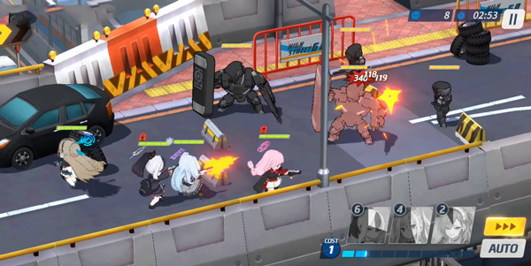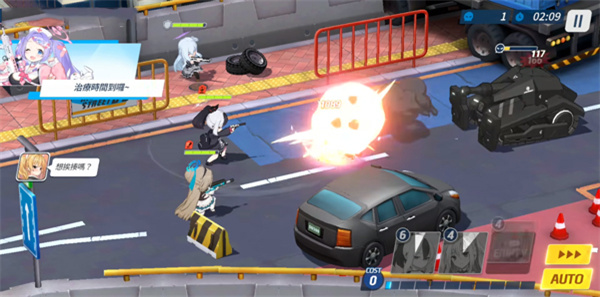 10、進入游戲如圖,玩家可手動操縱角色進行攻擊,也可點擊右下角AUTO自動作戰,以及加速進行;