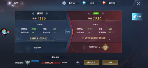 升級名望可以提升玩家生命,物理防御,閃避屬性。