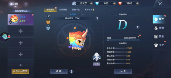 寵物評分:根據寵物的成長、資質、技能品質、技能數量決定