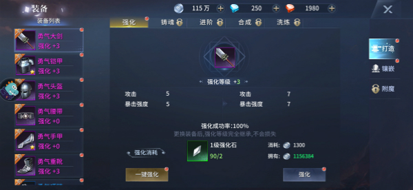 強化:更換裝備后,強化等級完全繼承,不會損失。