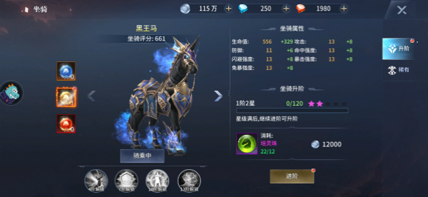 可通過升階提升坐騎屬性